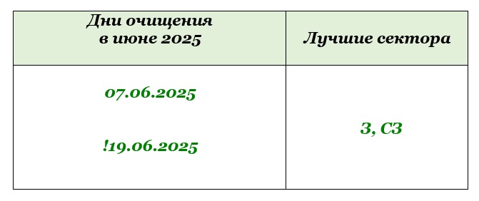 В июне есть два дня, которые помогают в очищении – это 7 и 19 июня. Особенно 19 июня, так как совпадает с убывающей Луной.