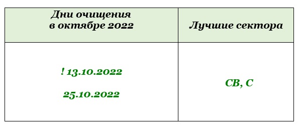 В октябре есть два дня, которые помогают в очищении – это 13 и 25 октября. Особенно 13 октября, так как совпадает с убывающей Луной.