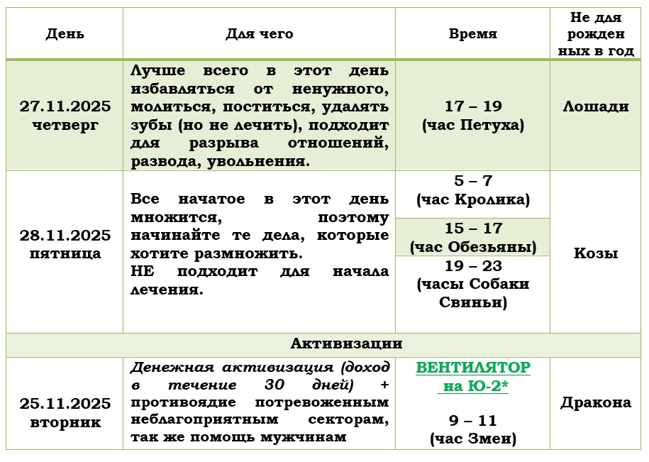 С 24.11.25 по 30.11.25 есть благоприятные дни, которые помогут в делах и активизация, которая повысит Вашу удачу: