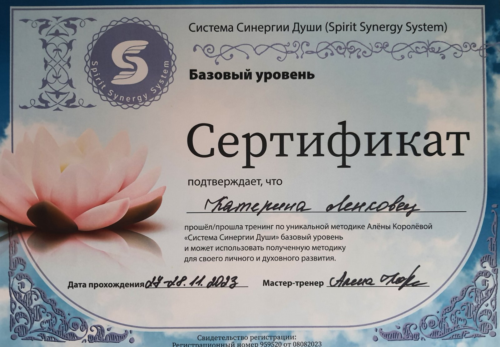 Обучалась у Елены Гимбицкой, в Академии Гранд Мастера Яп Чен Хая (инструктор Анатолий Соколов), у Владимира Захарова, Оксаны Андреевой (Ба Цзы), Ольги Ксагорари (Ба Цзы), Оксаны Сахрановой (Фэн-шуй, Ба Цзы), Александр Югай (Ци Мень Дунь Дзя), Татьяны Гарт (Ци Мень Дунь Дзя), Сергея Андреева (Ци Мень Дунь Дзя), Алексей Левандовский (Ци Мень Дунь Дзя).