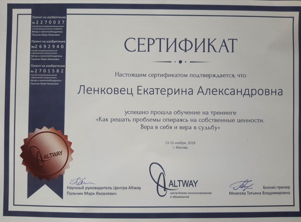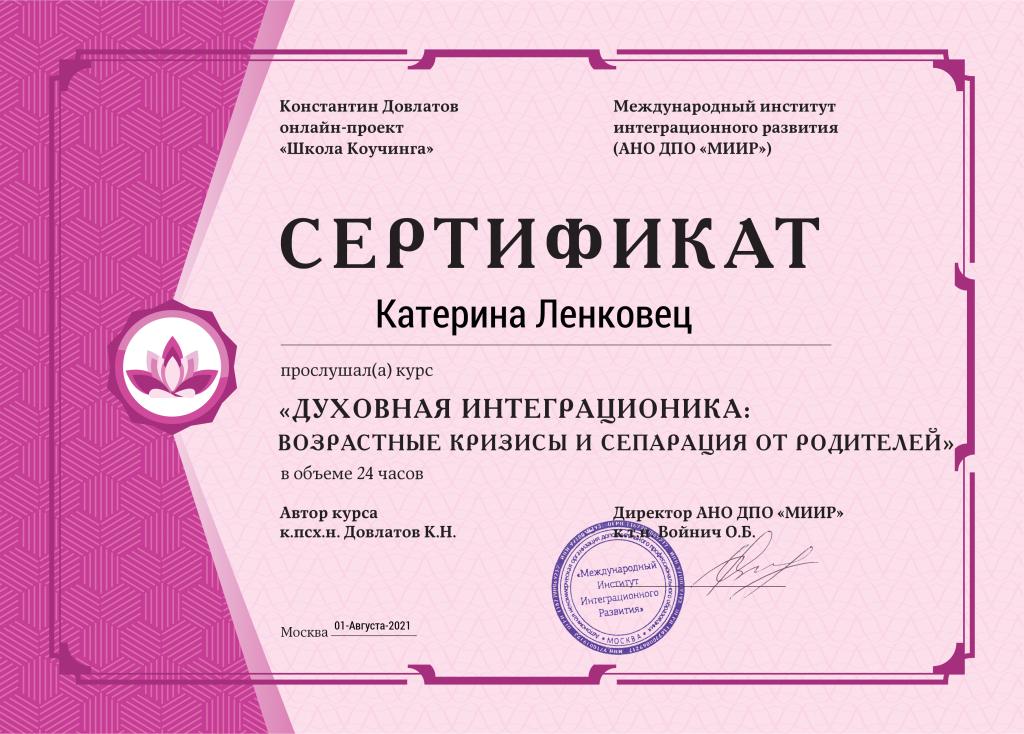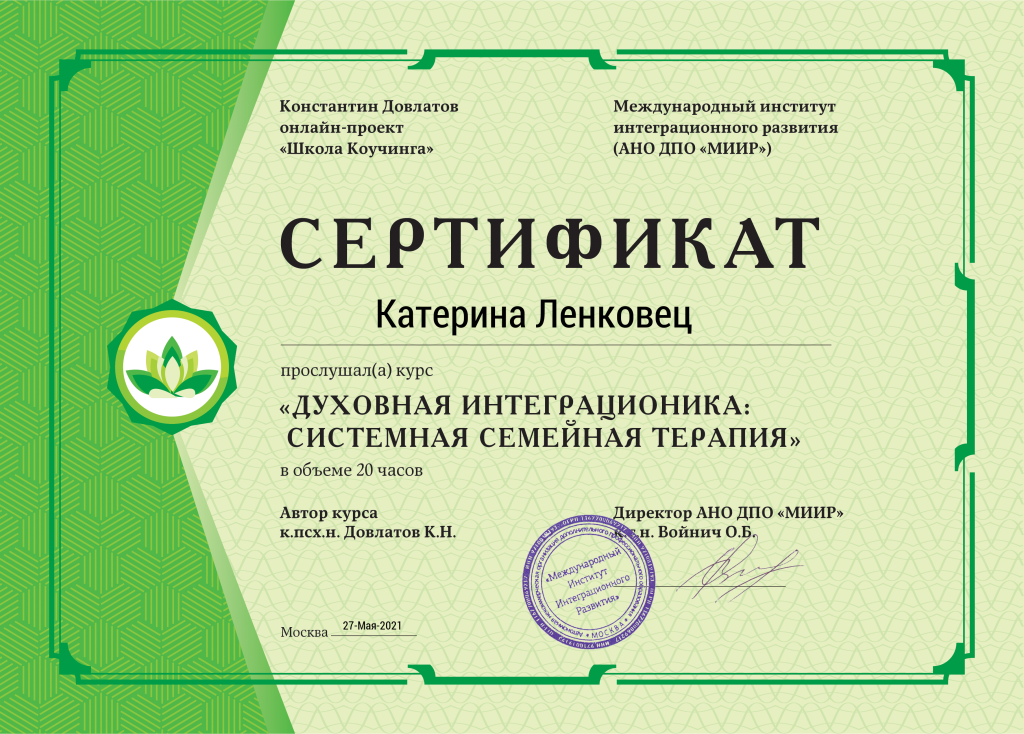 Меня зовут Катерина Ленковец. Я — счастливая жена, мама двух сыновей. Имею несколько образований с отличием: техническое, педагогическое, психологическое (дипломы и сертификаты по психологии здесь).
