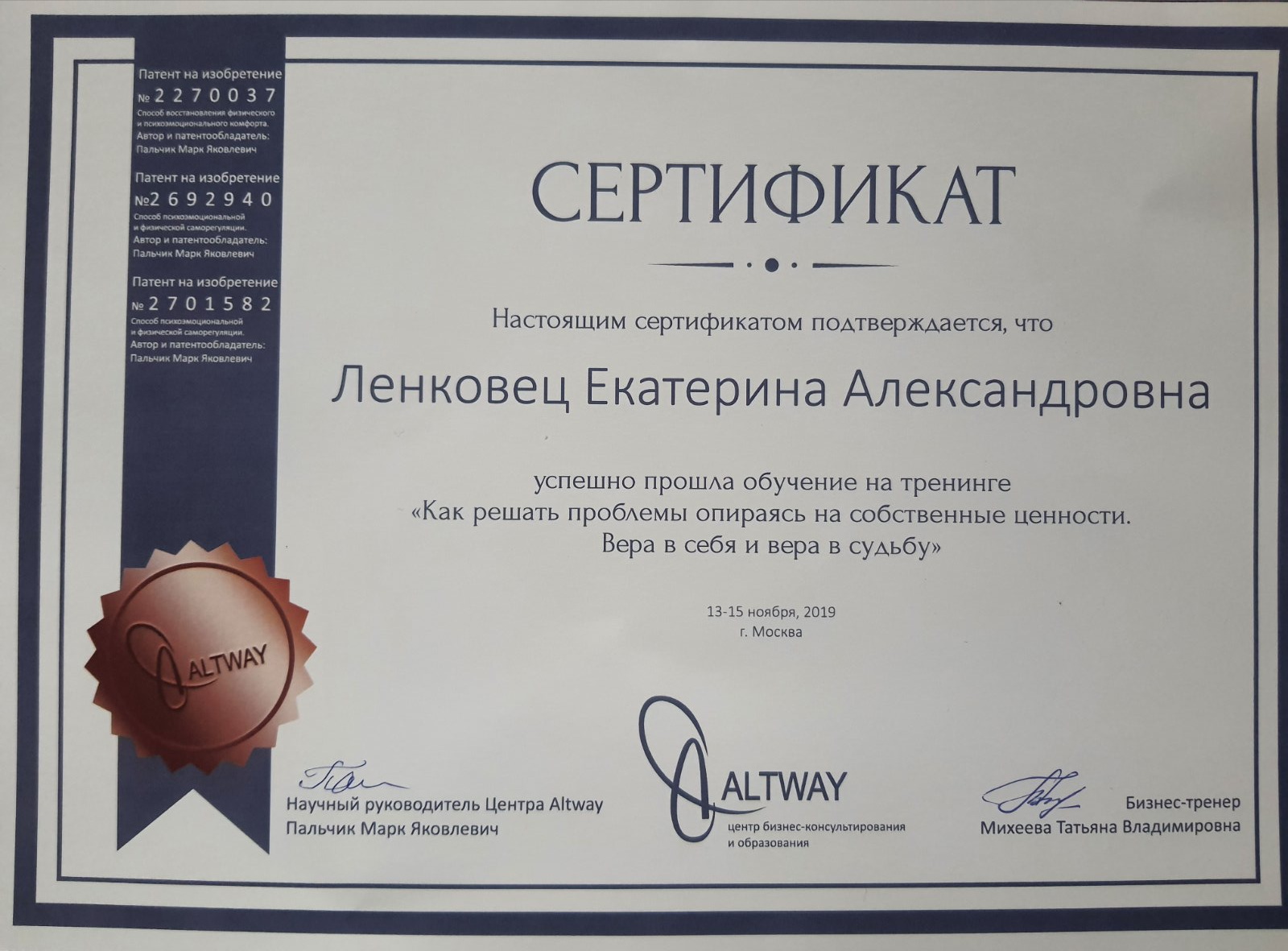 Дипломы и сертификаты по психологии: